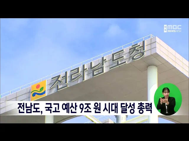전라남도가 내년 국고 예산 9조원 달성에본격 나서고 있습니다.정부 예산안 국회심사가 본격화 됨에 따라 전라남도는 국회 대응 전략회의를개최하는 등 앞으로 현안 예산을4천억원 이상 증액,반영하기 위해 정치권과 중앙부처에 지속적으로 건의할 계획입니다.한편 내년 정부 예산안에 반영된 전라남도 국고예산은 전년 대...