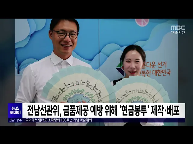 전라남도선거관리위원회가 추석 연휴를 맞아 내년 총선 관련 금품제공 행위를 예방하기 위한 '현금봉투'를 제작해 농협중앙회 각 시군지부에 비치했습니다.이번에 제작한 현금봉투에는 정치인의 기부행위 상시 제한과 금지 내용과내년 4월 10일 실시하는 제22대 총선 관련 선거 정보를 담았습니다.