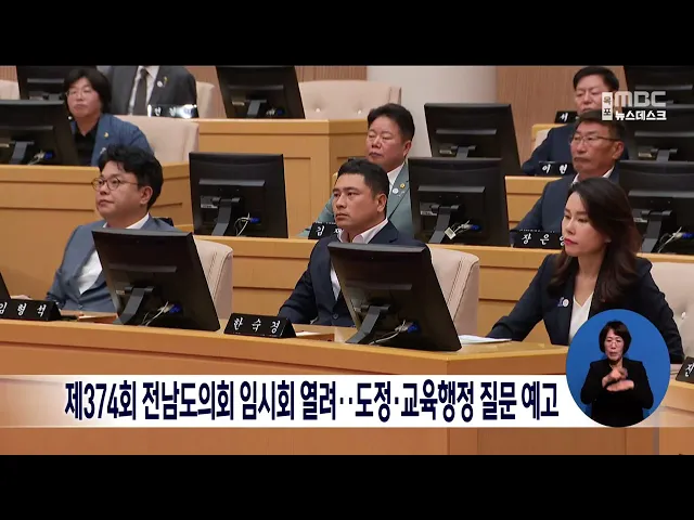 제374회 전남도의회 임시회가 오늘(5)부터 11일 동안 열립니다. 이번 임시회에서는 도정과 교육행정 전반에 걸쳐 주요 현안사항을 묻는 도정*교육행정 질문과 함께 도민 생활과 밀접한 각종 조례안 등의 안건을 처리하게 됩니다. 또 전라남도 인구감소지역 지원 조례안 등 78건의 안건을 심사하고, 오는 15일 본회의에서 ...