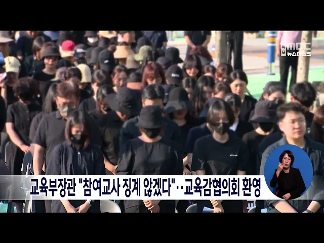 전국시도교육감협의회는 \"공교육 멈춤의 날 추모행사 참여 교사들을 징계하지 않겠다\"는 이주호 교육부 장관의 발언에 환영하는 입장문을 발표했습니다 또 한국교총 전남지부와 전교조 전남지부 등 교원단체와 학부모 단체들도 \"교사의 정당한 권위를 바로세우고, 학생 교육에 매진할 수 있는 계기를 만들어야 한다\"고 ...