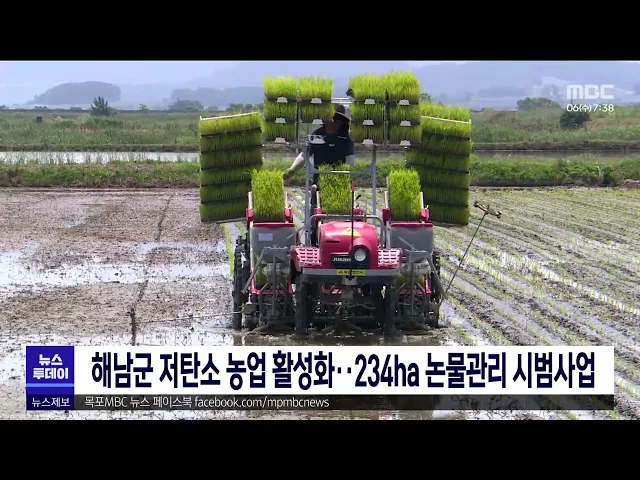 해남군은 저탄소 농업 확대를 위해 올해 14개 읍면 2백명을 대상으로 저탄소 농산물 생산과 인증방법과 벼 논물관리 기술 등을 교육했습니다. 특히 벼 논물관리기술은 탄소감축 뿐 아니라 벼의 품질 향상, 뿌리 활력 유지 등의 효과가 있는 것으로 알려졌으며, 해남군은 전국 유일의 논물관리 시범지역으로 2년 연속 선정...
