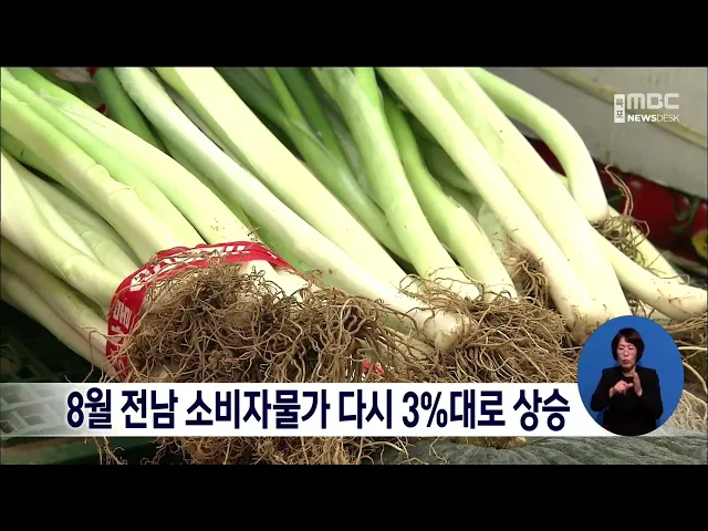 전남의 소비자 물가 상승률이 3개월 만에 다시 3%대로 올랐습니다. 호남지방통계청에 따르면 전남의 소비자물가지수는 112.83으로 지난해 같은 달보다 3% 상승했는데 특히 수박이 30.7% 오르는 등 과일류가 폭염과 폭우 영향으로 큰 폭으로 올랐습니다. 또, 전기·가스·수도 분야는 지난해 같은 달 보다 20.5% 올랐으며 농축...