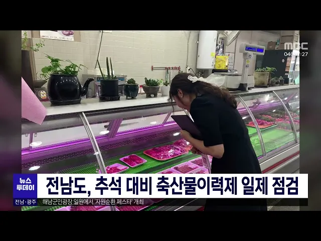 전라남도가 축산물 수요량이 급증하는 추석 명절을 맞아 안전한 축산물 유통을 위한 축산물이력제 일제 점검을 실시합니다. 전라남도는 오는 15일까지 시중에 유통되고 있는 축산물 가운데 수입산의 국내산 둔갑 판매와 이력정보 허위표시 등에 대해 집중적으로 점검할 예정입니다. 점검대상은 도내 축산물 판매업소와 식육...