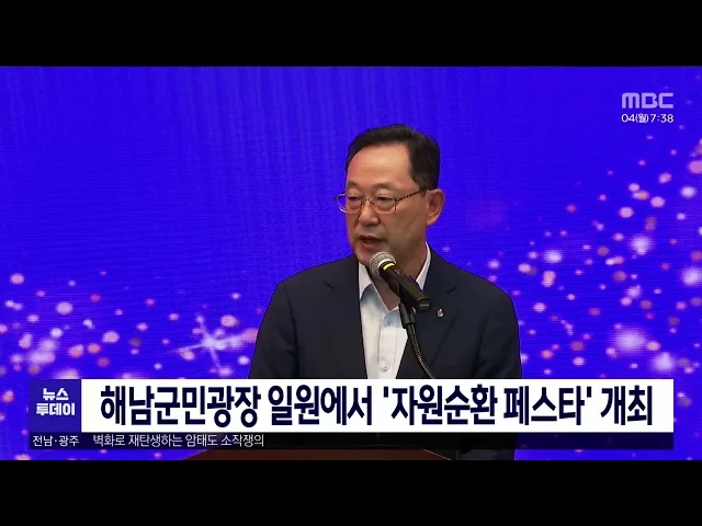 해남군이 오는 6일 자원순환의 날을 맞아 군민광장 일원에서 자원순환 페스타를 개최했습니다. ‘세 살부터 여든까지 지구를 지켜라’를 주제로 자원순환에 대한 공감대를 넓히기 위해 마련된 이번 행사에서는 탄소중립 미션수행과 아나바다 장터 등 자원순환을 체험하는 다양한 프로그램이 진행됐습니다.