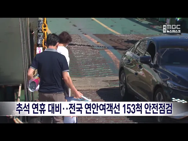 추석연휴를 앞두고 전국 연안여객선들이 안전점검을 받습니다. 해양수산부는 연휴기간 귀성객들과 섬 여행객들이 늘어날 것으로 보고 내일(4)부터 12일간 전국 153척의 연안여객선들의 설비와 안전관리실태를 중점적으로 살펴볼 예정입니다. 해수부는 해사안전감독관과 운항관리자 등 15명과 함께 선체, 갑판 등의 관리실태...