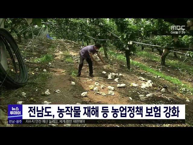 전라남도가 태풍 등 재해로부터 농업인을 보호하기 위해 농작물 재해보험 등 4가지 정책보험에 1522억원의 사업비를 투입합니다. 정책보험에는 보험료의 90%를 보조 지원하는 농작물 재배보험과 80%를 지원하는 농업인 안전보험, 농기계 종합보험, 가축재해보험이 있습니다. 농업정책보험 가입을 희망하는 농가는 가입신청...