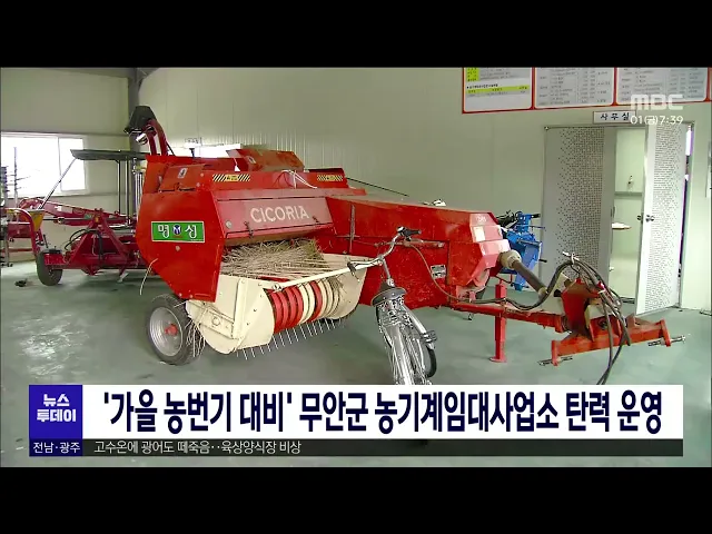 가을 농번기철이 다가오면서 무안군이 농업인들의 편의를 위해 농기계임대사업소를 탄력 운영합니다. 무안군 농기계사업소는 9월부터 석 달 동안 오전 8시 조기 출근하고 10월에는 토요일 주말근무를 하는 등 탄력근무를 시행하고, 농기계 운반서비스와 영농현장 긴급출동 서비스도 운영할 예정입니다.