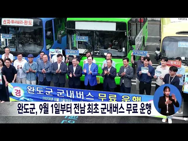 완도군은 9월 1일부터 군내버스 8개 업체 35대를 전면 무료 운행하기로 하기로 했습니다. 완도군은 인구 4만 6천명가운데 65세 이상 노인이 35%를 차지하고 있어 자가운전을 하지 않는 어르신과 학생들의 불편을 해소하기 위해 무료운행을 추진하게 됐다고 밝혔습니다 완도군내버스는 68개 노선에 35대가 운행하고 있으며,...