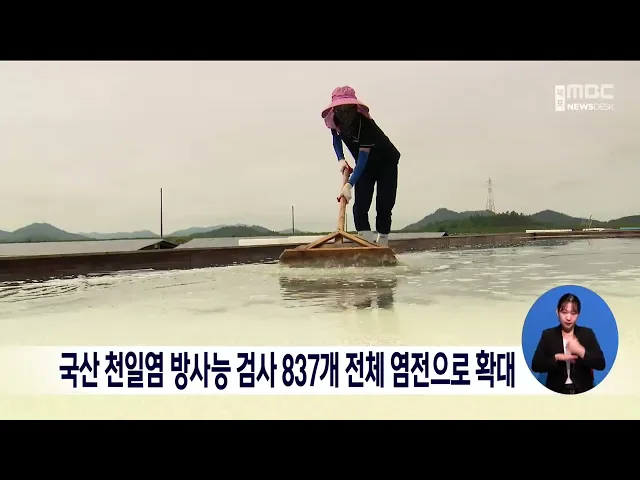 해양수산부는 올해 4월부터 실시해 온 국산 천일염 방사능 검사 대상을 837개 전체 염전으로 확대했습니다. 현재까지 86개소 109건을 검사한 결과 모두 적합이었으며 해양수산부는 천일염 생산이 끝나는 10월까지 전수검사를 마칠 계획입니다. 해양수산부는 또, 11월부터는 올해 생산 후 창고에 보관 중인 천일염도 추가로 ...