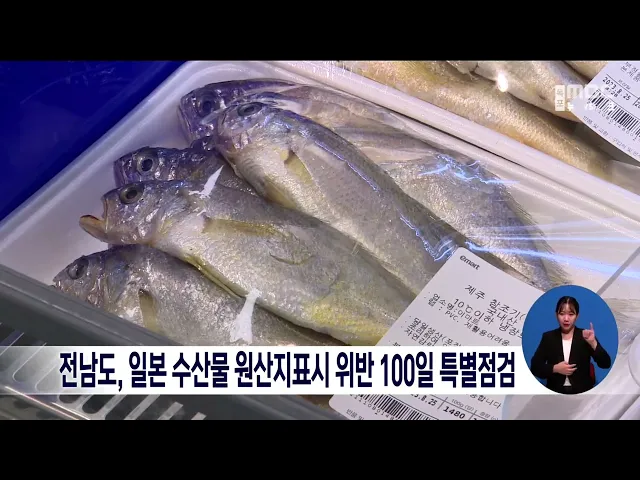 전라남도는 일본 후쿠시마 원전 오염수 방류로 수산물 원산지에 대한 도민의 우려가 커짐에 따라 100일동안 수입 수산물 원산지 표시 특별 점검에 나섭니다. 전라남도는 수입량이 많은 활참돔과 연간 원산지 위반 사례가 많은 활가리비 등을 중점 품목으로 지정해 일본 수산물 유통업체 374개소를 대상으로 점검에 나섭니다...