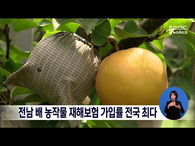 전남지역 배 농작물의 재해보험 가입율이 전국에서 가장 높은 것으로 나타났습니다. 전남지역 배 가입 대상 면적 2천4백 헥타르 가운데 90%가 보험에 가입됐으며, 이는 전국 평균보다 16% 높은 수치입니다. 배 보험 가입자는 저온 피해와 태풍 등에 따른 낙과, 나무 찢어짐 등까지 보상받을 수 있습니다.