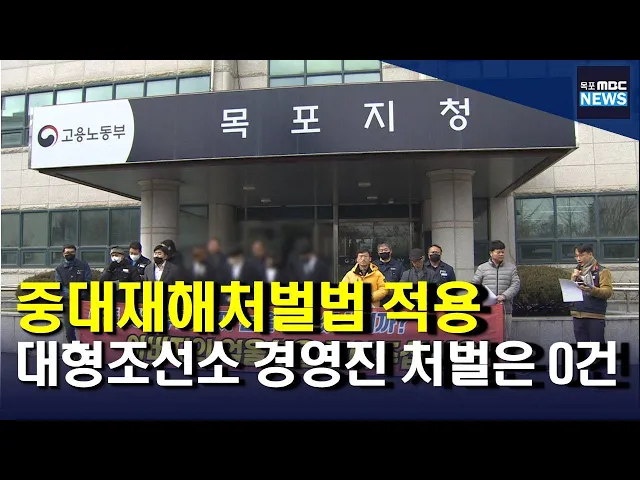 ◀ANC▶ 조선업체 노동자 사망사고가 끊이지 않고 있습니다. 지난해부터 중대재해처벌법이 시행됐지만 사고가 난 대형 조선소 경영진들에 대한 처벌은 계속 지연되고 있습니다. 서일영 기자가 취재했습니다. ◀END▶ ◀VCR▶ 현대삼호중공업에서는 올들어 모두 2명의 노동자가 숨졌습니다. 최근 40대 노동자가 튕겨져 나...