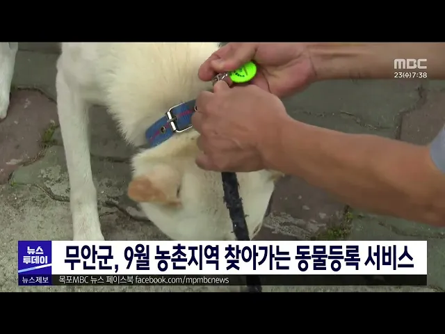 무안군이 9월 중 농촌지역 찾아가는 동물등록 서비스를 실시합니다. 무안군은 농촌지역의 반려동물 등록이 저조하고 유실·유기 동물 신고도 증가함에 따라 과태료 등 불이익을 사전에 방비하고자 찾아가는 동물등록 서비스를 시범 운영하기로 했습니다.
