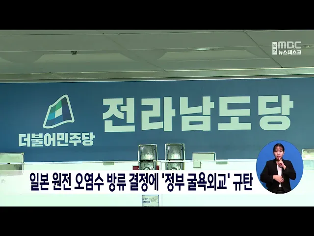 일본이 24일 원전 오염수를 방류하기로 한 것과 관련해 지역 정치권도 반발하고 있습니다. 더불어민주당 전남도당은 "경악스럽고 통탄할 일"이라며 "윤석열 대통령은 국격을 훼손하고 국민의 생명과 안전을 책임지지 못하는 등 굴욕적 외교를 일삼고 있다"고 비판했습니다. 정의당 전남도당도 일본의 결정을 규탄하며 피해 ...