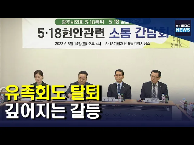 (앵커) 5.18 부상자회와 공로자회에 이어 유족회가 5.18 행사위 탈퇴를 선언했습니다. 5.18 유족회마저 시민단체와 거리를 두게 되면서 5월단체와 시민단체간 갈등은 더욱 커지게 됐습니다. 임지은 기자가 취재했습니다. (기자) 이른바 특전사동지회와의 화합 행사를 두고 5.18 공법단체와 시민단체가 서로를 비난하는 상황...