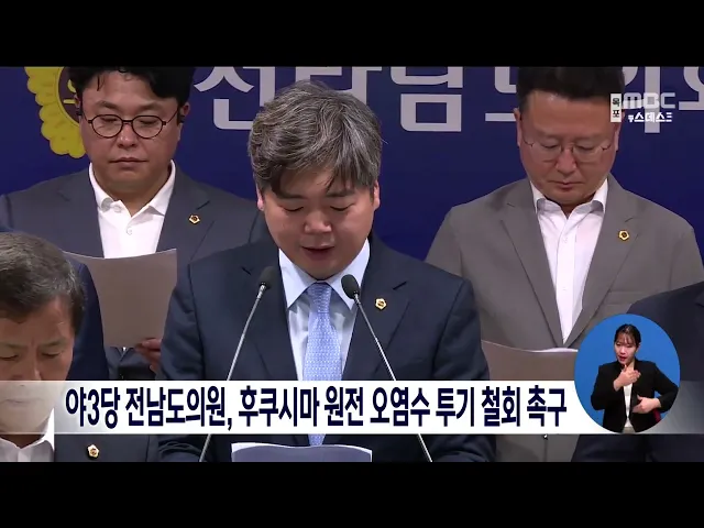 더불어민주당과 진보당, 정의당 소속 전남도의원들이 일본 후쿠시마 원전 오염수 해양투기 계획 철회를 촉구했습니다. 국민의힘을 제외한 야3당 소속 도의원들은 "원전 오염수 투기는 최대 어업지역인 전남은 물론 미래 세대에까지 치명적인 영향을 줄 것"이라며 정부는 국민이 반대하는 방류를 모든 외교 역량을 통해 저...