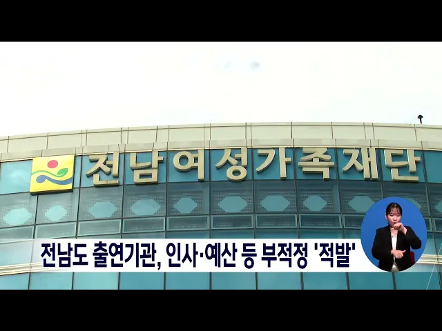 전라남도 출연기관들의 부적정 행정 행위들이 도 감사에서 무더기로 적발됐습니다. 여성가족재단은 인사위원회 위원장을 원장이 직접 맡아 직원 채용과 승진 등을 심의 의결한 것으로 드러났으며, 환경산업진흥원은 홍보물과 기념품 구입비 6천7백여만 원을 행사 운영비 등으로 부적정하게 집행한 것으로 확인됐습니다. 또,...