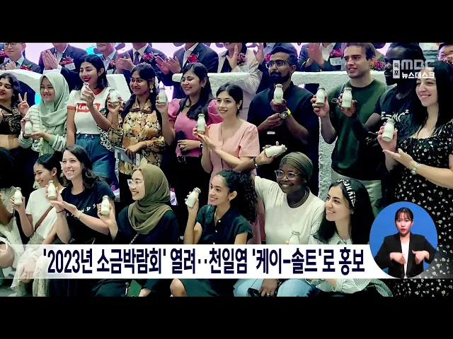 서울 코엑스에서 '하늘 아래 다양한 소금과 만나다'라는 주제로 2023년 소금박람회가 나흘 동안 열리고 있습니다. 전라남도와 해양수산부, 영광군, 신안군이 공동 주최하는 이번 박람회는 국산 천일염을 '케이-솔트'로 알린다는 목표로 외국인 관람객들에게 다양한 소금제품과 시식, 체험거리를 선보이고 있습니다.