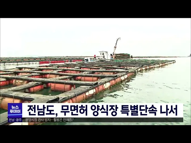전라남도가 양식수산물 수급 안정화와 건강한 양식환경 조성을 위해 무면허 양식장 특별단속에 나섭니다. 이번 특별단속은 전복과 김 등 주요 양식품종을 대상으로 무면허 양식과 면허면적 초과, 유해화학물질 보관, 사용 등입니다..