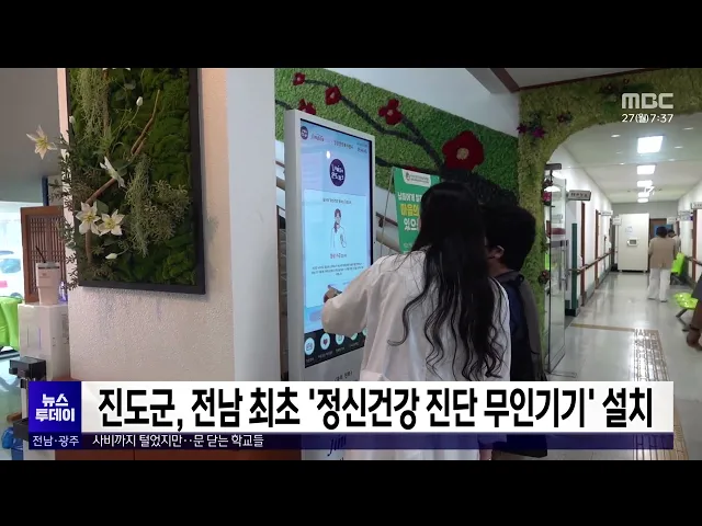 진도군은 전남 최초로 '정신건강 진단 무인기기(키오스크)'를 보건소에 설치하고, '내마음의 온도'를 쉽게 점검하고 상담 예약을 진행하도록 했습니다. 진도군의 정신건강 무인기기는 청소년과 성인, 노인 등의 우울증과 스트레스, 불안장애 등의 정신건강 상태를 자가 검진하고, 인근 정신의료기관 정보를 확인할 수 있습...