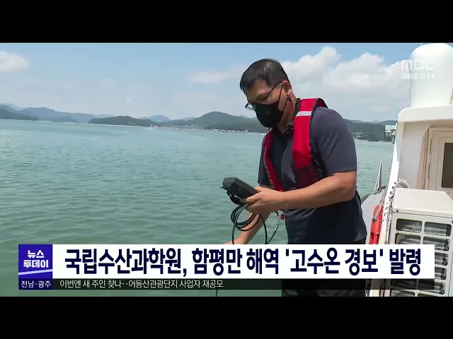 국립수산과학원은 함평만을 포함한 서해 내만에 내려졌던 고수온 주의보를 오늘(3) 오후 2시를 기해 경보로 대체 발령했습니다.. 함평만 해역에는 28도 이상의 수온이 3일간 지속되고 있으며 수온이 30. 1도를 기록하고 있습니다. 국립수산과학원은 양식어장에서 고수온 피해를 입지 않도록 주의하고 국립수산과학원에서 제...