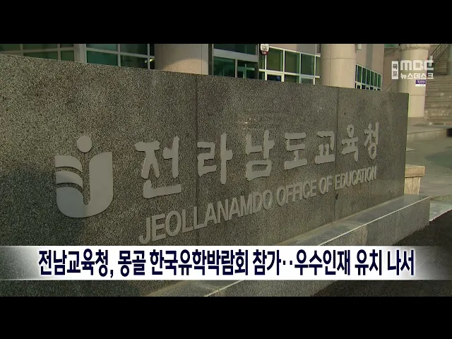 전남교육청은 최근 몽골 울란바토르에서 열린 2024 해외 한국유학박람회에 참가해 전남의 해외 유학사업을 홍보하는 등 우수인재 유치에 본격 착수했습니다. 몽골 한국유학박람회에는 3천여 명의 몽골 학생들이 참여해 한국 유학에 대한 관심을 보였고, 전남교육청은 박람회 기간동안 몽골지역 학교를 방문해 학생선발에 ...
