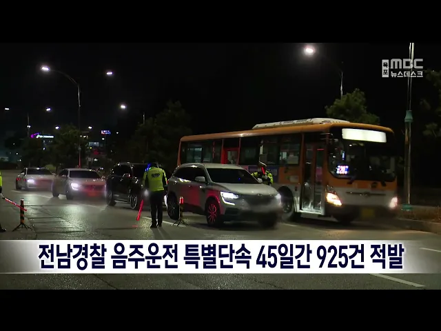 전남경찰청은 음주운전 특별단속을 시작한 지난달 8일부터 45일간 모두 925건의 음주운전자를 적발했다고 밝혔습니다. 이는 하루 평균 20.5건이 적발된 것으로, 지난해 같은기간 848건과 비교하면 9.1% 증가한 것이고, 코로나 19 유행기인 지난 2천22년과 비교하면 16.8% 급등한 수치 입니다. 전남지역에서 최근 5년간 음...