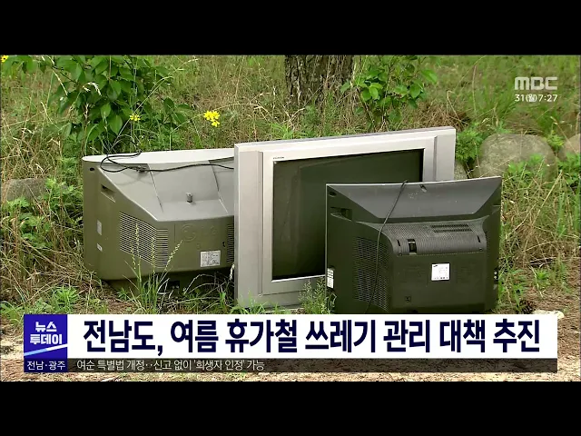 전라남도는 여름 휴가철을 맞아 피서지와 다중이용시설 등을 대상으로 쓰레기 수거 등 관리 대책을 추진합니다. 전라남도는 종량제 봉투 임시 판매소와 이동식 분리수거함 등을 확대하고 쓰레기 무단투기 단속반을 운영해 불법 소각행위 등을 점검할 계획입니다. 지난해 휴가철 쓰레기 관리대책 추진결과 2백35곳에서 4천23...