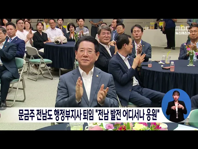 문금주 전라남도 행정부지사가 2년 간의 직무를 마무리하고 오늘 퇴임했습니다. 지난 1995년 공직에 입문해 행정안전부 감사담당관과 전남도 기획조정실장 등을 역임한 문금주 부지사는 이임사를 통해 "전남이 더욱 살기 좋고 풍요로운 고장으로 발전하길 어디서나 응원하겠다"고 밝혔습니다.