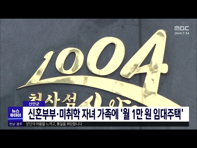 신안군, 신혼부부·미취학 자녀 가족에 '월 1만원 임대주택'