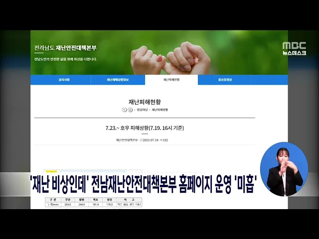 전남 재난안전대책본부 홈페이지 관리가 허술하게 운영되고 있습니다. 전남 재난안전대책본부는 재난 특보와 재난피해 상황 등을 홈페이지에 게시해 도민에게 알리고 있는데 주말 이후 일부 자료를 계속 잘못 표기해 혼선을 일으켰습니다. 이에대해 전라남도는 "장마철 비상 근무가 이어지면서 착오가 있었다"며 앞으로 정...