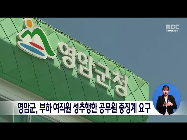 영암군이 부하 여직원을 성추행했다는 의혹이 제기된 6급 공무원에 대해 전라남도에 중징계 의결을 요구했습니다. 해당 공무원은 면사무소에서 근무하면서 부하 여직원 다수에게 성희롱과 성추행을 저질러왔다는 내부 신고가 접수됐으며, 영암군은 자체 조사 결과 사안이 중대한 것으로 보고 중징계를 요구했다고 밝혔습니...