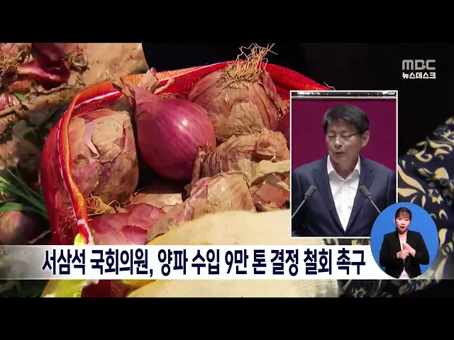 서삼석 국회의원, 양파 수입 9만톤 결정 철회 촉구