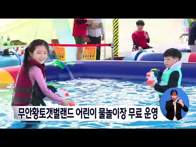무안군이 여름철을 맞아 황토갯벌랜드 내 어린이 물놀이장을 무료로 운영합니다. 오늘(21)부터 개장한 어린이 물놀이장은 어린이용 풀장과 유아용 풀장이 별도로 마련돼 있으며, 다음달 20일까지 매주 월요일과 기상악화 시만 제외하고 매일 이용할 수 있습니다.