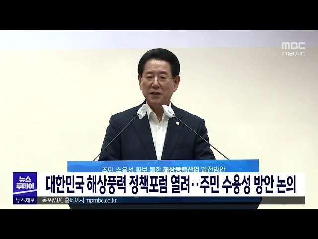 '제3회 대한민국 해상풍력 정책포럼'이 오늘(20) 전남도청 왕인실에서 열려 해상풍력 주민 수용성을 확보하기 위한 방안이 논의됐습니다. 포럼에는 전라남도와 신안군, 어업인단체, 발전사 등 120여 명이 참석했으며 전라남도는"어업인을 비롯한 주민의 의견을 경청해 합리적 보상체계 마련과 주민참여 이익공유, 수산업 ...