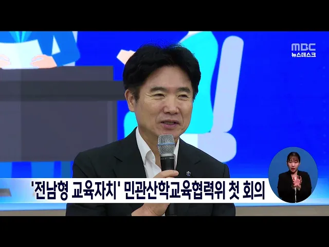전남교육의 발전을 모색하는 민관산학교육협력위원회가 첫 회의가 열렸습니다. 민관산학교육협력위원회는 앞으로 교육과 일자리의 선순환 체계 구축, 전남교육 현안에 대한 실질적인 해결방안을 모색하는 역할을 적극 수행하기로 했습니다. 민관산학교육협력위는 도교육청과 공공기관, 학부모, 산업체, 대학 등으로 구성됐...