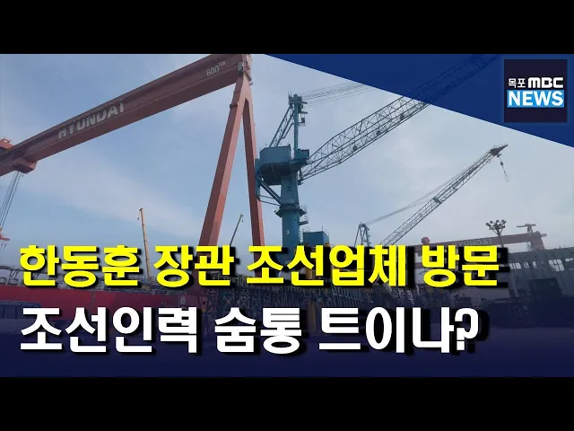 ◀ANC▶ 법무부가 인력부족 난을 겪고 있는 조선업계 등을 위해 외국인 노동자 쿼터제 확대 추진 방안을 발표했는데요 한동훈 법무부장관이 현장 목소리를 청취하기 위해 현대삼호중공업을 찾았습니다. 안준호 기자가 보도합니다. ◀END▶ 전남지역 조선업체들도 지난해부터 수주 호황을 누리고 있습니다. 앞으로 몇년간 ...