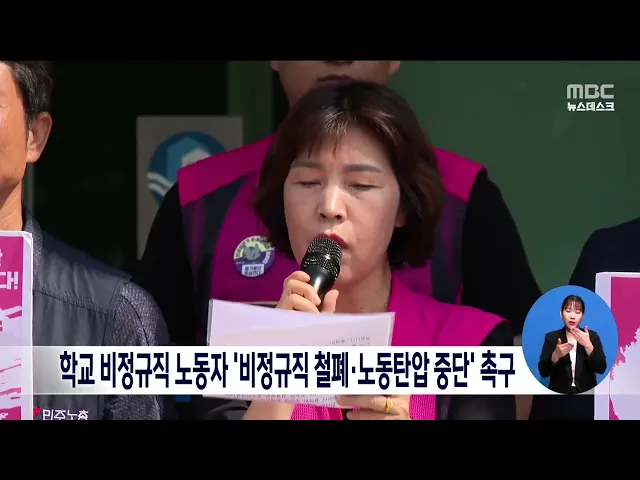 오는 15일 서울에서 열리는 학교비정규직 노동자 총궐기대회를 앞두고 전남학교비정규직 노조는 오늘(10) 전남교육청 앞에서 기자회견을 열고 비정규직 철폐와 노동탄압 중단을 촉구했습니다. 학교비정규직노조 전남지부는 학교급식 시설 개선 등 노동환경 개선을 요구했지만 정부가 외면하면서 집단폐암 산재사고의 원인이...
