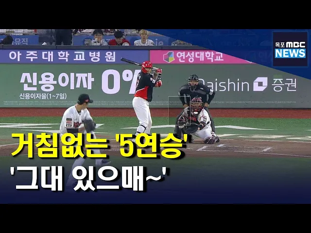 (앵커) 기아 타이거즈가 지난 주 부상에서 복귀한 나성범과 김도영의 활약으로 거침없는 5연승 행진을 이어가며 6위로 올라섰습니다. 대체 외인투수도 데뷔전에서 독특한 투구폼과 안정적인 구위로 팀 상승세를 견인하고 있습니다. 한신구 기자가 보도합니다. (기자) .. 홈런 ... 홈런 (나성범 7/8 6회 7/9 7회 ) 이틀 연속...