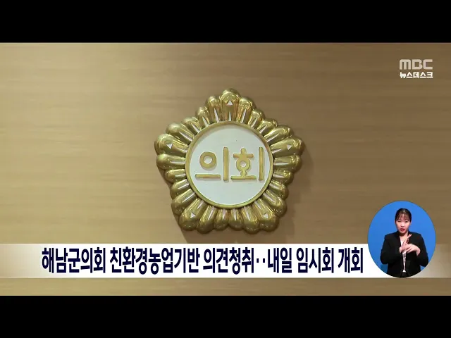 해남군의회는 내일(11) 제329회 임시회 개회를 앞두고 의원간담회를 통해 해남군으로부터 친환경농업기반 사업에 대한 의견을 청취했습니다. 해남군의회는 간담회에서 20억원을 투입해 계곡농협에 시설하는 친환경 농산물 생산·가공·유통기반 조성에 필요한 시설을 해남군에서 지원 가능한 방안을 모색하도록 요구했습니다...