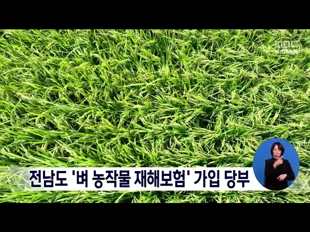 전라남도가 태풍과 집중호우 등 자연재해에 대비해 '벼 농작물 재해보험'에 가입할 것을 당부했습니다. 벼 농작물 재해보험 가입은 일반 벼는 오는 30일, 가루쌀은 7월 7일까지이며 전라남도는 올해부터 자기부담비율 상품 가입 기준을 완화하고 손해평가와 재조사 등 보험 결과에 이의가 있으면 이의신청 할 수 있는 제도...