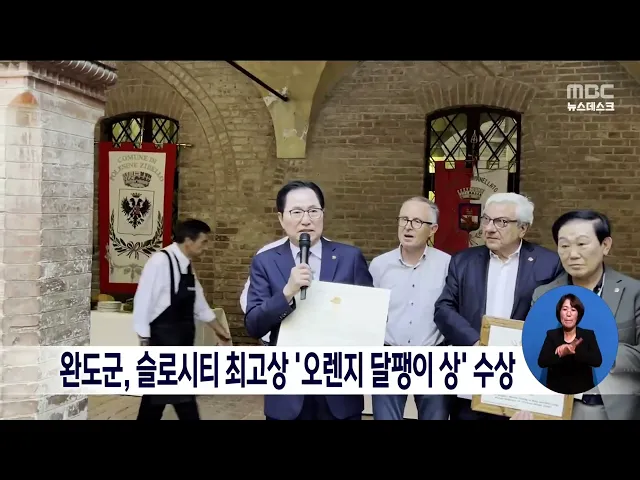 완도군이 최근 이탈리아 파르마에서 열린 '2023 국제 슬로시티연맹 총회'에서 국제 슬로시티 최고상인 '오렌지 달팽이 상'을 수상했습니다. 완도군은 국제슬로시티연맹 33개국 288개 도시를 대상으로 실시한 공모에서 삶의 질을 높이기 위한 도시 정책부문에 '해양치유'정책으로 응모해 좋은 평가를 받았습니다.