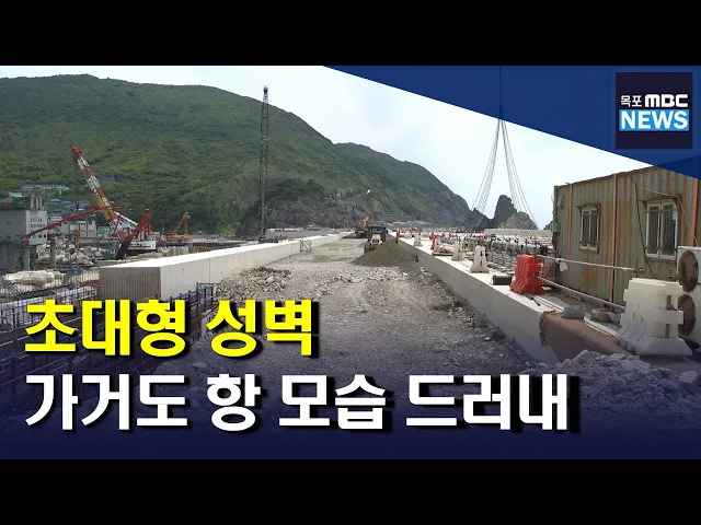 ◀ANC▶ 국토 최서남단 가거도에는 국내 최장 토목공사인 가거도항 공사가 40여 년째 진행 중입니다. 공사가 9월 완공될 예정인 가운데 본격적인 태풍피습 시기가 다가오면서 마무리 공사에 속도를 내고 있습니다. 김 윤 기자가 현장을 다녀왔습니다. ◀END▶ ◀VCR▶ 지난 2천11년 8월, 태풍 무이파가 일으킨 거대한 파...