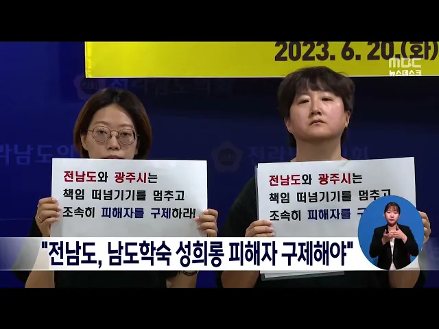 정의당 광주시당과 전남도당이 전남도의회에서 기자회견을 열고 전라남도가 남도학숙 성희롱 피해자에 대한 소송 비용 구제 방안을 마련해야한다고 촉구했습니다. 정의당은 최근 전남도가 행정예고한 '소송사무 처리 규정 개정안'은 현재 진행 중인 성희롱 피해자 사건 이후부터 적용돼 피해자를 구제하지 못한다고 지적하...