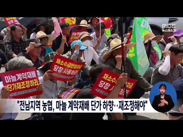 전남 서남부채소농협과 신안군지역 농협이 올해산 마늘 계약재배 단가를 지난해보다 천 원 이상 하락한 kg당 3,200원대로 결정한 것과 관련해 농민들이 반발하고 있습니다. 전국마늘생산자협회 전남도지부는 오늘(19) 신안농협에서 기자회견을 열고 가뭄과 기온 저하, 높은 인건비 등으로 마늘 농가들은 이중고를 겪고 있...