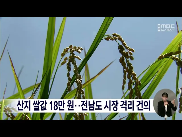 2023년산 산지 쌀값이 18만 원까지 떨어지면서전라남도가 정부에 시장격리를 건의했습니다. 최근 통계청이 발표한 쌀 한가마니(80kg)가격은 18만9천 488원으로 지난해 10월 이후하락세를 보이고 있습니다. 전라남도는 미곡종합처리장 등 현장 목소리를 반영해정부에 15만 톤의 시장격리 등 쌀값 하락을 막기 위한 실효성...