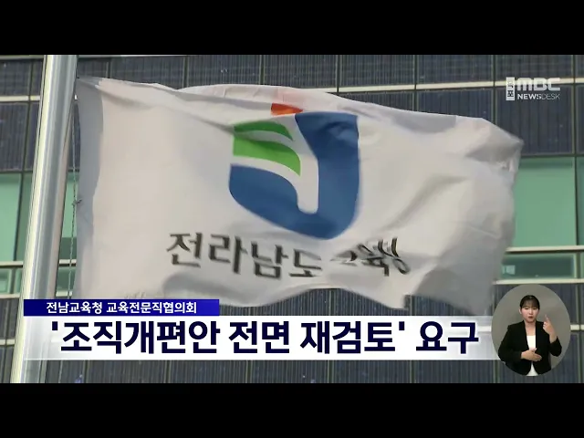 전남교육청 교육전문직협의회는 최근 운영위원회를 열고, 전남교육청의 조직개편안에 대한 전면 재검토를 요구했습니다. 전남교육청과 직속기관, 교육지원청에서 근무하는 321명의 교육전문직원들은 요구사항에서 조직개편 취지는 충분히 이해하지만, 내용과 절차에서 학교현장의 요구를 전혀 반영하지 못했다고 주장했습...