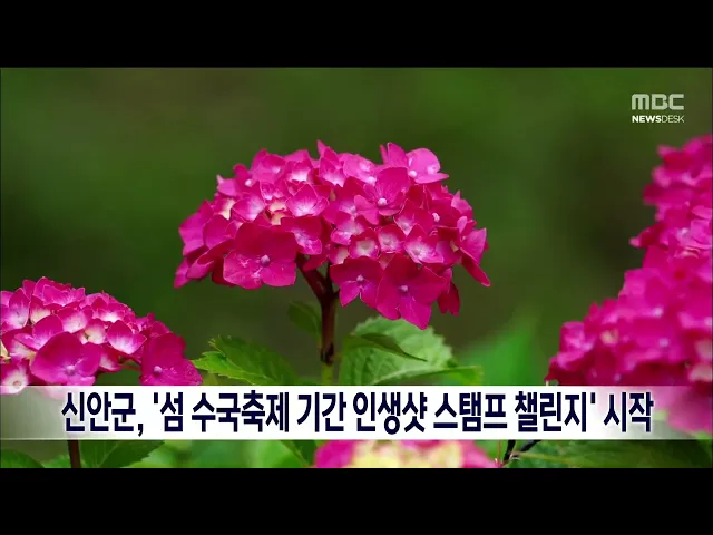 신안군은 도초도에서 오는 26일까지 열리는 '섬 수국축제' 기간 동안 '배로 가는 섬 수국축제 인생샷 스탬프 챌린지'를 시작했습니다. 이번 챌린지는 모바일 앱을 통해 천사대교, 비금 하트해변, 도초 환상의 정원과 수국정원 등 10곳 중 한 곳에서 사진을 촬영하고 쓰레기를 줍기 사진을 올리면 보상을 주는 방식으로 진...