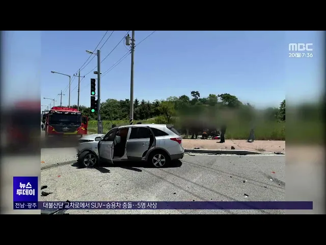 대불산단 교차로에서 SUV-승용차 충돌..5명 사상
