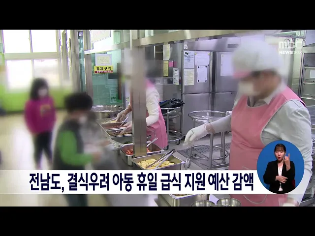 전남도, 결식우려 아동 휴일 급식 지원 예산 감액
